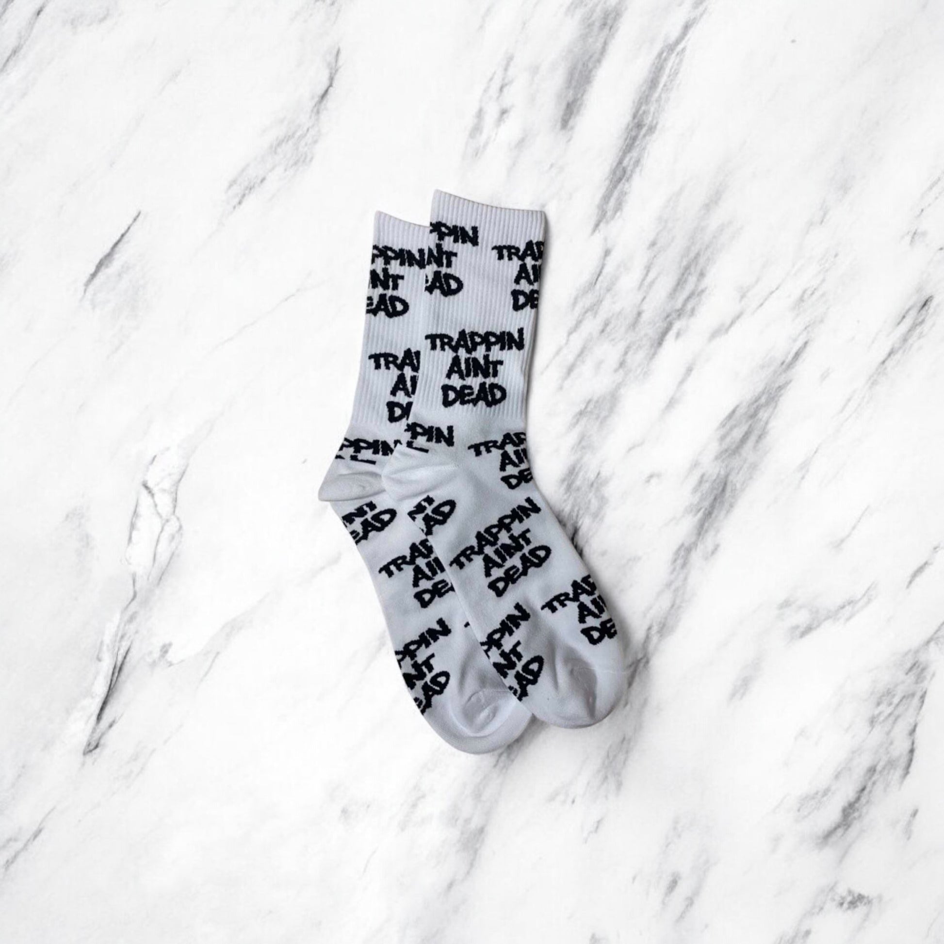 WFM “Trappin Ain’t Dead” Socks (White)
